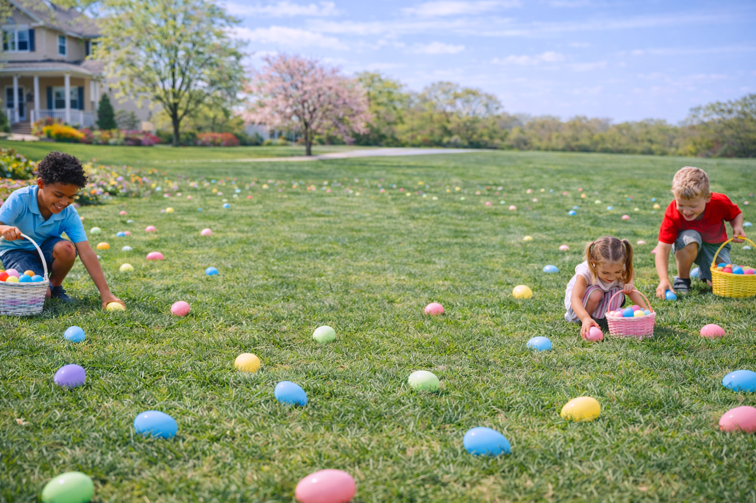 On the morning of April 4th, our team quietly hides candy-filled eggs across your front lawn.